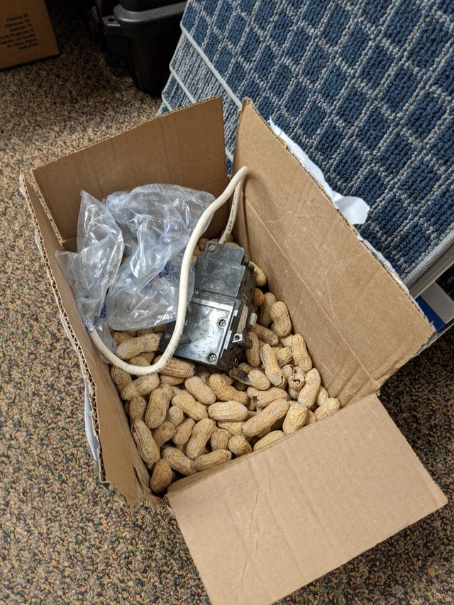 Посилка, у якій замість пластикового наповнювача використовується арахіс