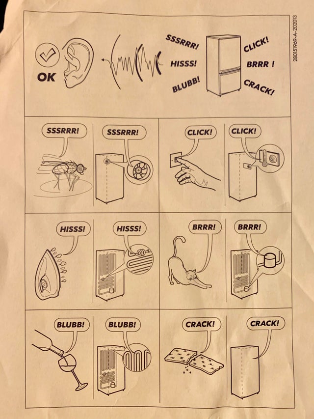 Інструкція до холодильника, яка пояснює, які звуки для нього – норма