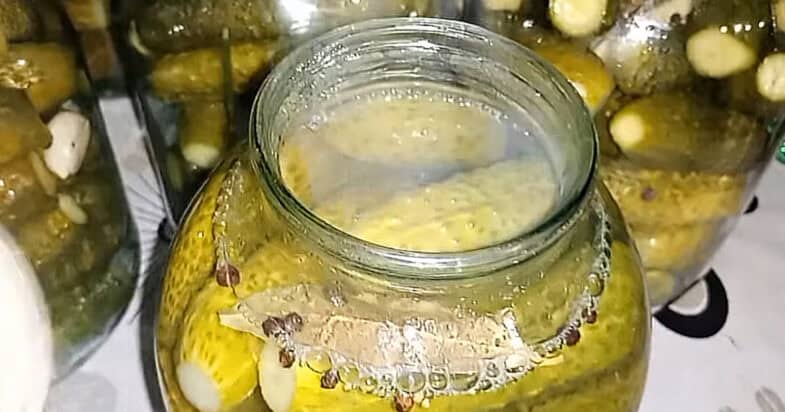 Заливаю гарячим маринадом огірки. Закатую кришками, перевертаю банки догори дном, накриваю теплим пледом, залишаю до повного охолодження. Зберігаю навіть без погреба — просто в кладовці або в шафці на кухні. Перевірено роками!
