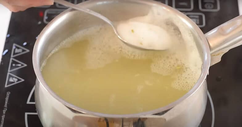 А розсіл ставлю на вогонь, доводжу до кипіння, знімаю піну ложкою і кип’ячу буквально 1 хвилинку. Потім заливаю цим гарячим розсолом огірки.
