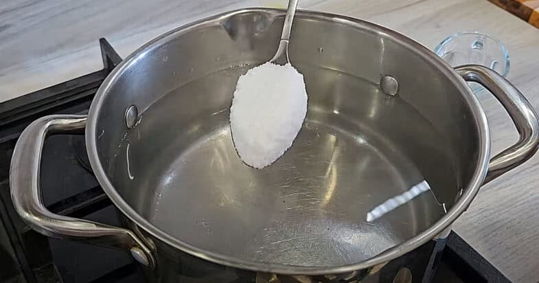 У каструлю вливаю чисту воду, додаю сіль та цукор, вливаю оцет, доводжу до кипіння.